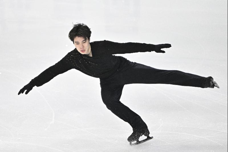 2025年12月26日,全国花样滑冰锦标赛男子单人滑短节目比赛在哈尔滨举行,戴大卫在比赛中。新华社发